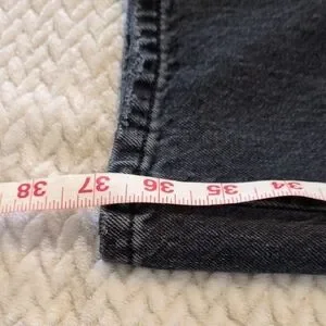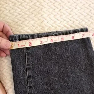 Everyone's favorite Everlane , The 90s Way-High Jean in black.The leg is wide enough to be current but not loose.