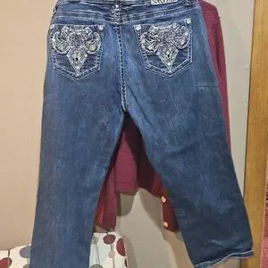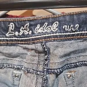 Trendy L.A. Idol jeans. Features intricate white stitching. Ideal for casual outings. these are capris size 33×18 inches coming with a top that's black and white size extra large by chaps