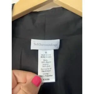 This stunning Soft Surroundings kimono is a perfect blend of bohemian flair and luxurious comfort. Featuring intricate, colorful embroidery on the shoulders and sleeves, it adds a pop of vibrancy to any outfit. The soft, flowing fabric and relaxed fit make it ideal for layering over your favorite top or dress. Whether you're sipping wine at a garden party or enjoying a casual day out, this kimono offers a stylish, effortless look.