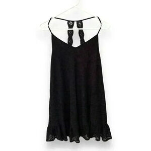 Umgee Women's Medium Black Floral Lace Ruffled Hem Back Detail Sundress