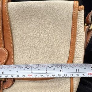 Set of 2 Project Bags: Elegant Erica crossbody bag with a cream body and tan accents. Features a sleek design and adjustable strap. The Erica shoulder bag is a stunning navy with bold red interior. Vintage. Just need a little love.