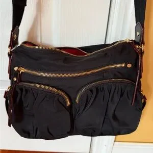 MZ Wallace Black Crossbody Bag with Gold Zippers
