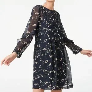 Club Monaco Silk Catira Floral Pleated Mini Dress Navy Size 0