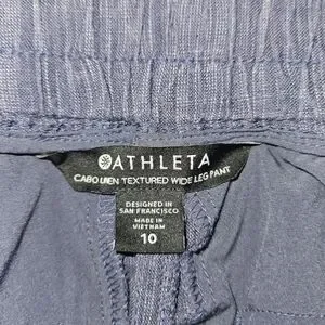 ATHLETA Cabo Blue Chambray Wide Leg Linen Pants Size 10