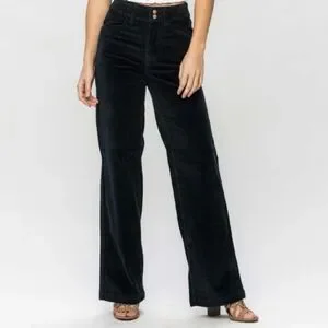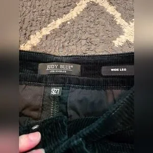 Judy Blue Corduroy Pants Women Sz 5/27 Wide Leg High Rise Emerald Green Stretch