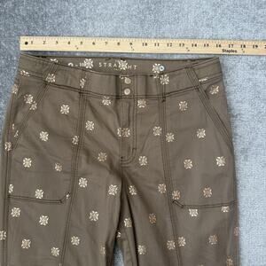 White House Black Market Pants Womens 10L Straight Crop Brown Metallic Print