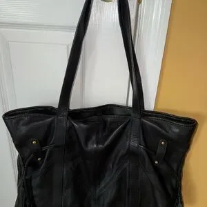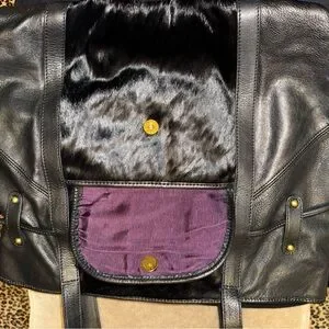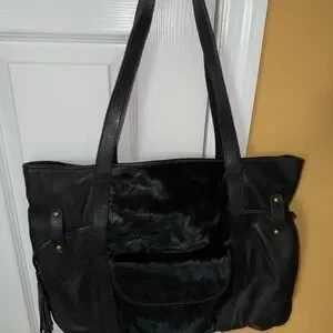 Chic black leather tote by HOBO. Features sturdy straps and stylish design. Ideal for daily use. Has fur in the front. Very new condition. Used twice