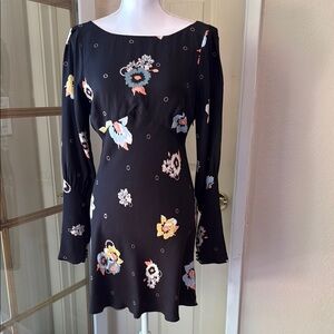 This stunning black sheath dress by Free People features elegant bell sleeves and a sophisticated bateau neckline, perfect for a cocktail night out. The dress is designed with a sleek silhouette that flatters the figure, while the long sleeves add a touch of drama. Crafted for style and comfort, it's an ideal choice for making a statement at any evening event.
