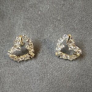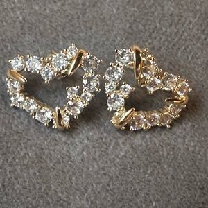 These elegant heart-shaped earrings feature a stunning combination of gold and silver tones, perfect for adding a touch of sophistication to any outfit. Ideal for both casual and formal occasions.