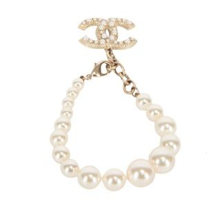 It is made of pearls in different sizes with dangling CC logo encrusted with pearls and crystals