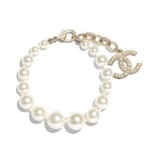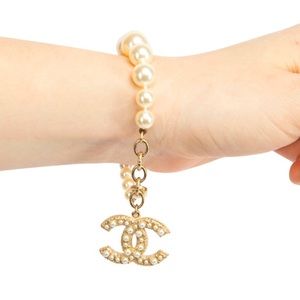 Chanel Gold CC Pearl Pendant Pearl Bracelet