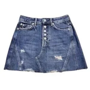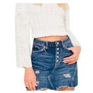 NWT Free People Harvey blue distressed denim mini skirt. NO TRADES.