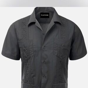 Intricate embroidery and pintuck pleats. Short sleeve with 4 front pockets. Soft and light fabric. Perfect for wedding, vacation, or any casual event.