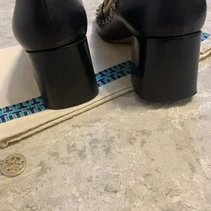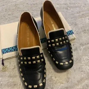Tory Burch Black Studded Loafers with Gold Details