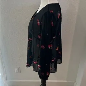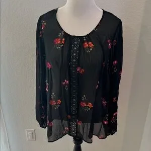 City Chic Black Floral Sheer Blouse