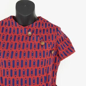 Classic Vintage 60's Rona Shift dress in red and blue, paired with a matching coat jacket. Women's size medium, fully lined, in excellent condition with no noticeable flaws.