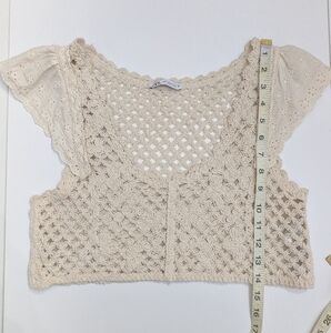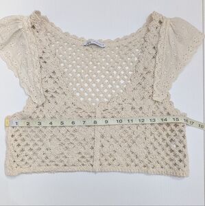 Zara Woman Ivory Cream Crochet Crop Top Bralette Cap Flutter Sleeve Summer M