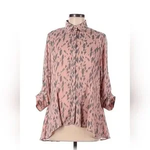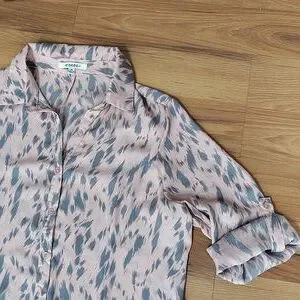 Pink and Gray Ladies Size Medium Dressy Blouse, Ladies Button Down Top