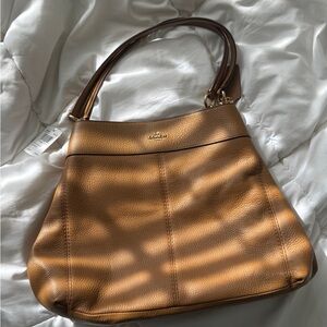 NWT leather Coach shoulder bag in saddle tan leather, medium size. Accepting offers !