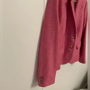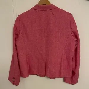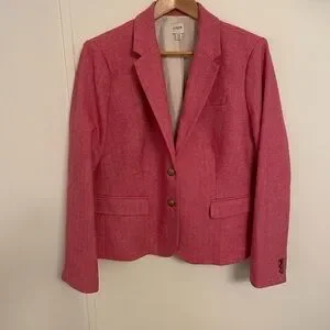 Elegant J. Crew blazer in vibrant pink. Features a tailored design with a classic lapel. Perfect for versatile styling.