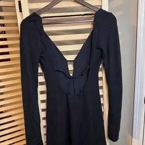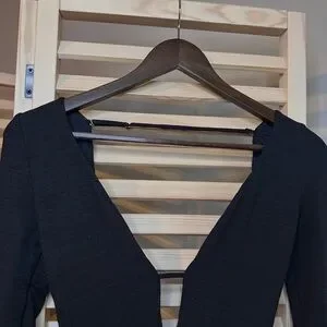 Black slightly flared Long Sleeve Plunge V Neck Short Dress. Adjustable straps on the Back. Perfect for any occasion- can be dressed down for casual dinners or dressed up for date night. Perfect for fall. Brand new tags with still on. Size XS Oh Polly. Would also fit S.