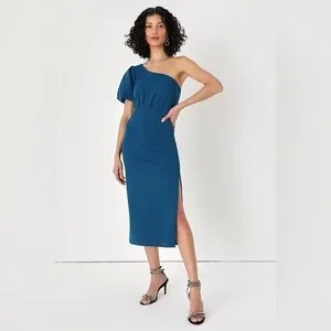 New Lulu's Ultimate Poise Teal Blue One-Shoulder Midi Dress XS X-Small