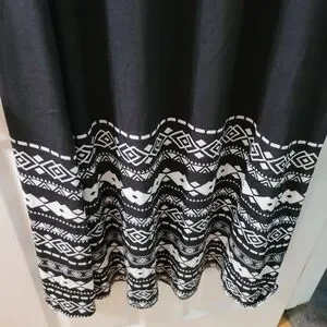 This chic maxi dress features a sleek black design with a striking white geometric pattern at the hem. Perfect for any occasion, it combines elegance with comfort.