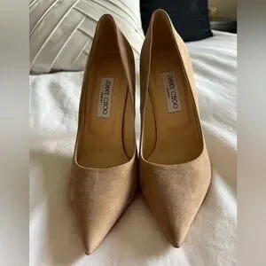 Jimmy Choo Tan Suede Romy Pumps