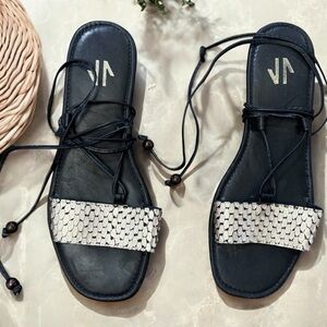 Silvia Cobos Santos Black & Gold Leather Boho Wrap Sandals Size 40/9