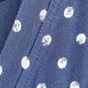 LL BEAN Dress M Stretch Rayon Jersey Polka Dot Surplice Short Sleeve Blue
