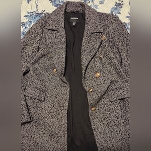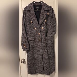 Express Gray Tweed Double-Breasted Long Coat | Classic Chic