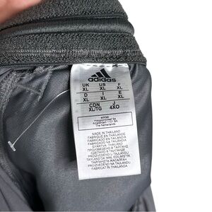 Adidas nylon track pants. Size mens XL. Model is 5”9 and has a 30” inseam. Great condition and quality. Gray colorway. Super lightweight and breathable. Has elastic drawstring waist, front zipper pockets, front logo, and zipper cuffs.