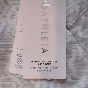 New with tags NWT women's plus size 2X Athleta Run With It Printed 3.5" Short. Athletic style shorts with a mid rise waist and 3.5 inch inseam. Made from lightweight performance fabric in an all-over white and grey geometric print. Stretchy waistband with adjustable internal drawstring. Dolphin style sides with split hem for better mobility. Back has a zippered key pocket. See photos for condition. No stains or holes. Reasonable offers always welcome!