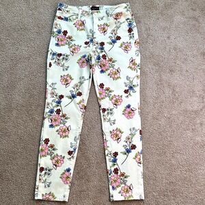 TALBOTS Floral Woman's White Slim Ankle Jeans Size 8 Summer Pants Stretch