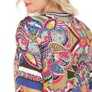 JOHNNY WAS The Janie Favorite Oversized Cropped Tee Multicolor Crew Neck Large