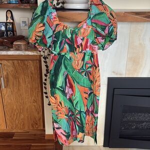 Like New. Beautiful cotton viscose blend. Puff sleeves. Back zip. Lined.