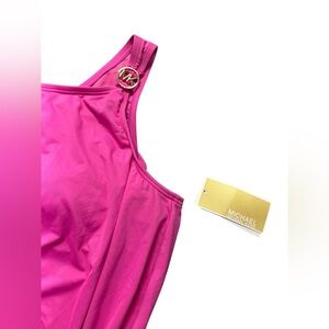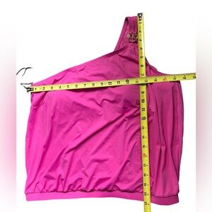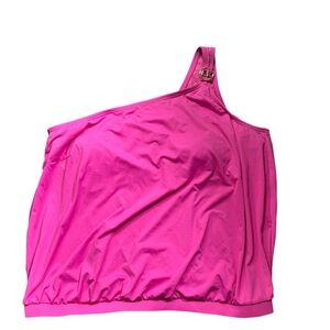 MICHAEL KORS one shoulder hold logo loose fit blousy banded tankini swim top. Item measured flat in picture.