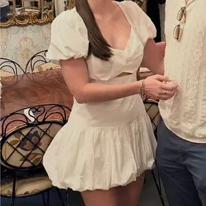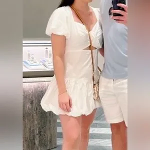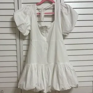ASTR the label White Puff Sleeve Mini Dress With Bubble Skirt