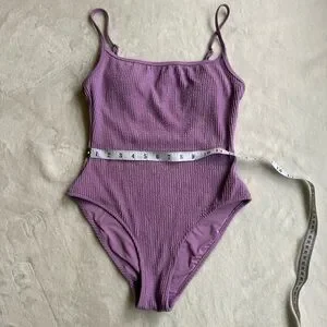 Aerie Crinkle Scoop Purple Ribbed One-Piece Swimsuit