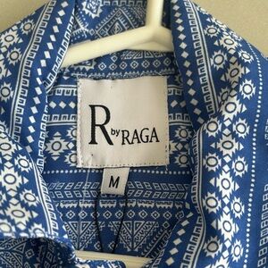 R by Raga Blue Patterned Youths Button Down Shirt, Size M Boys 14-16