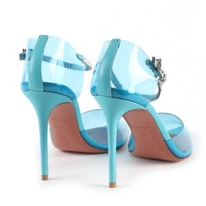 NEW WITHOUT BOX GORGEOUS AMINA HEELS. Featuring transparent blue PVC body and set with a crystal-embellished strap, ankle-buckle fastening, pointed toe, stiletto heel.