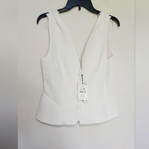 Zara Zw Collection Linen Blend Ecru Buttoned Volume Vest Sz-L