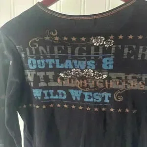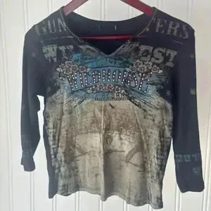 Wildhorse Long Sleeve Tee Rhinestones Vintage Western Print Y2K GLAM GRUNGE