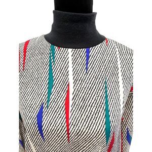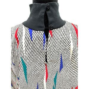 Claudia vintage 80s b&w primary color abstract mock turtleneck blouse. Size L P2P 23"; waist 15". Made in USA.