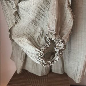 Elegant sage blouse with ruffle details. Button-up front. Perfect for versatile styling. New condition.