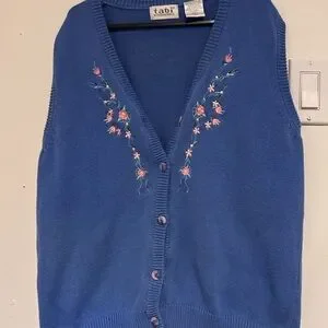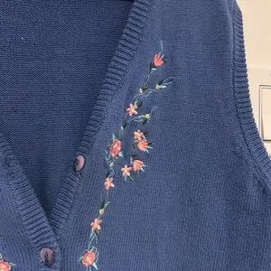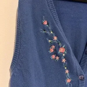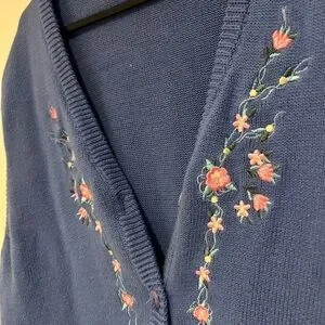Add charm to your wardrobe with this blue/purple cardigan, featuring delicate floral embroidery. Ideal for a stylish, cozy look.