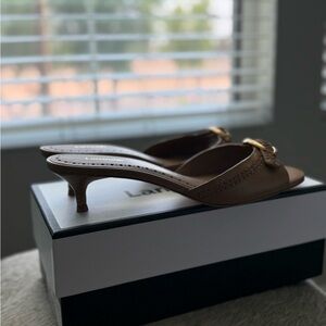 Larroude Tan Sandals with Gold Buckle