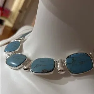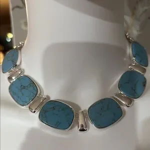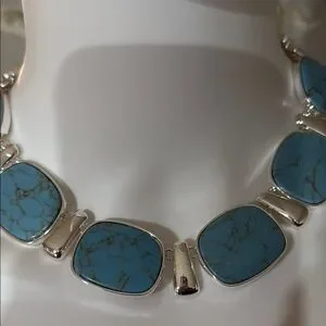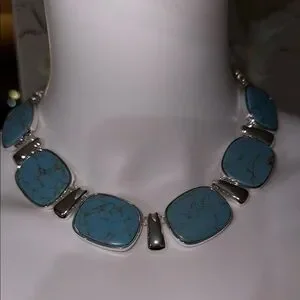 Chic silver necklace with bold blue stones. Ideal for a stylish look.