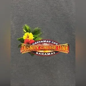 Disney Cruise Line Mickey Mouse Castaway Cay Bahamas Vacation style shirt, color is blue with back graphic & front logo.