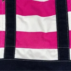 J. Crew pink, natural and dark navy or black striped cotton canvas tote bag. Some interior stains. Only 1 is visible from the outside. Please see last photo prior to purchase. Otherwise excellent condition.